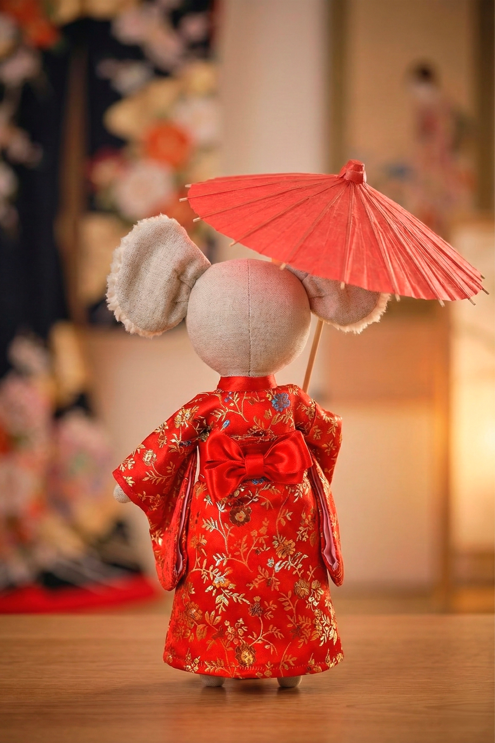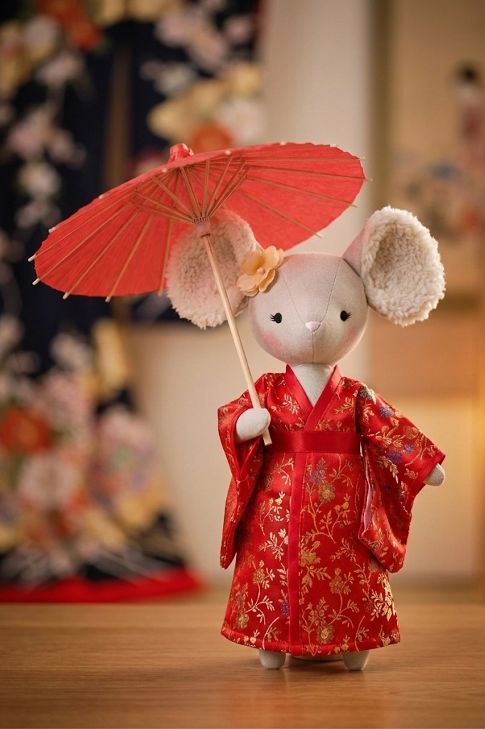 ¡Hola! Me llamo Yua, (nombre japonés que significa «amor o vínculo de afecto» ) pero si quieres, puedes ponerme tu nombre. Soy una japonesa 100% artesanal, lo que me hace única. Mi cuerpo es de lino y algodón de máxima calidad y mi relleno es hipoalergénico. El interior de mis orejas es de suave sherpa, mis ojos de vinilo textil, tengo la nariz bordada y las mejillas pintadas a mano. La tela del Kimono es un Brocado de seda.